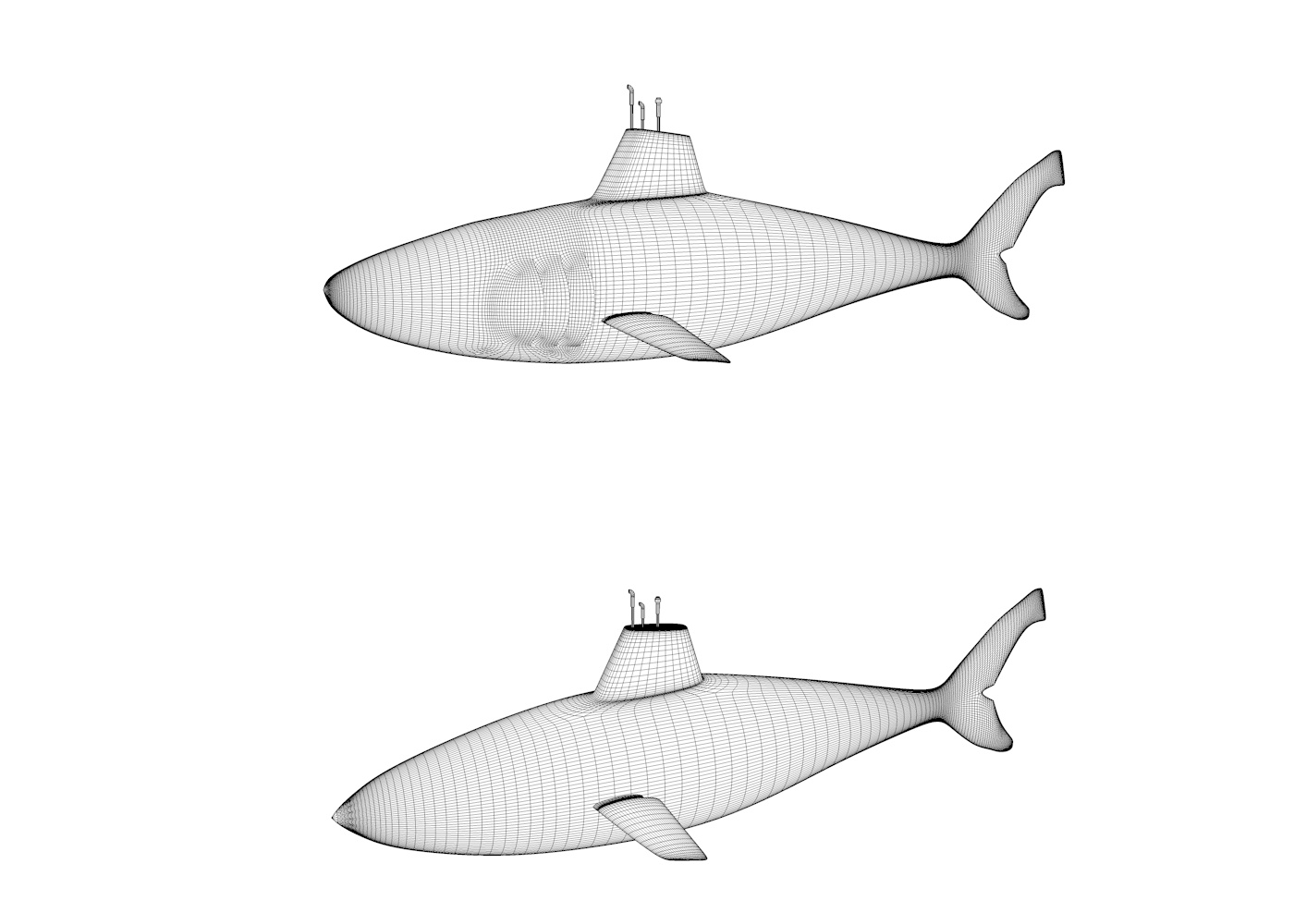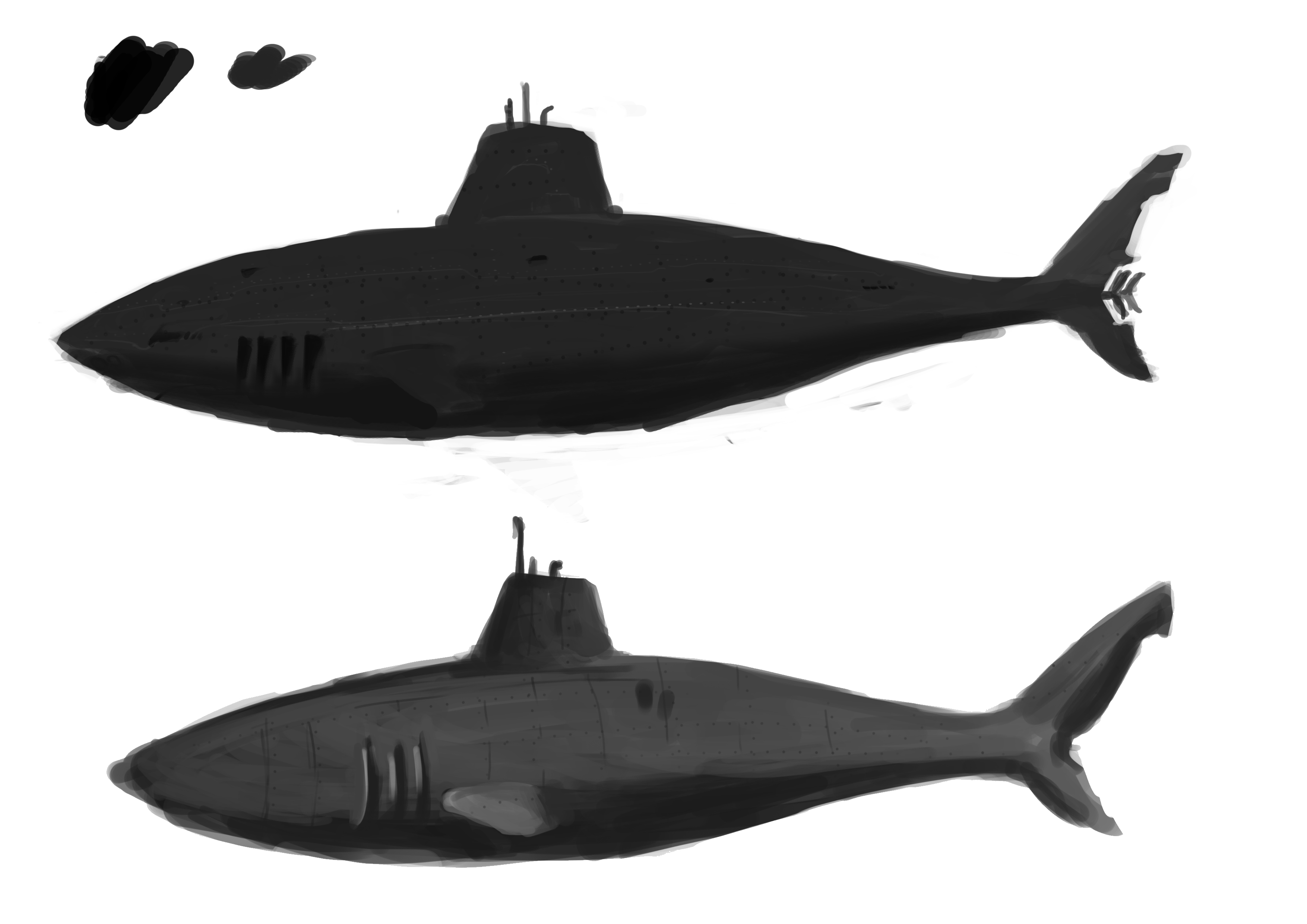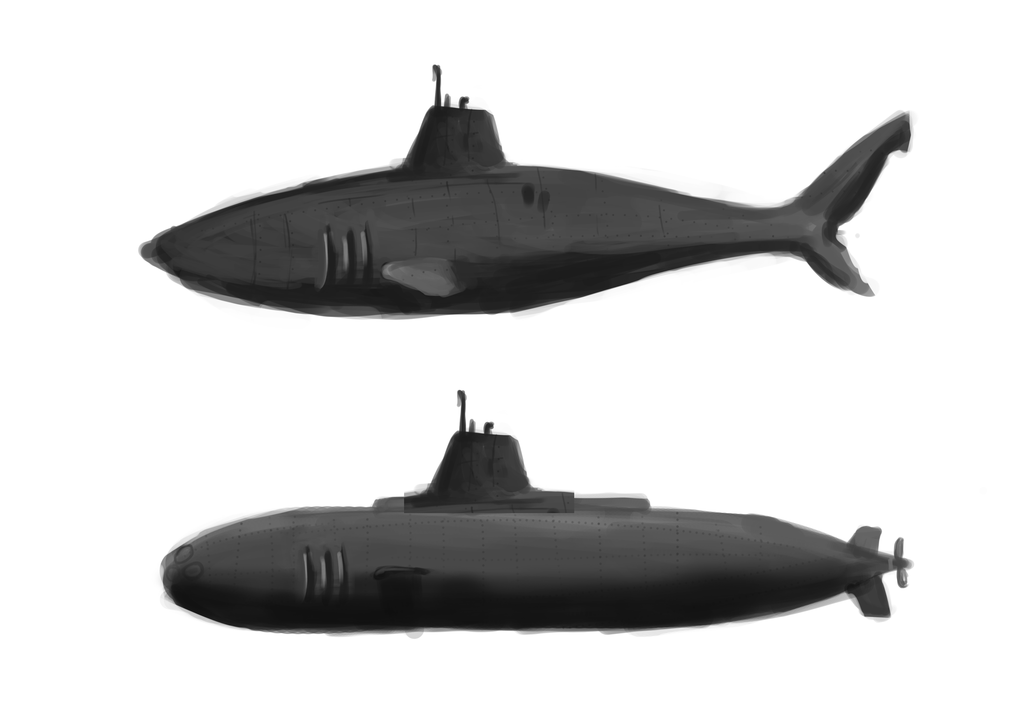 اتود اولیه که تلفیقی از بدنه کوسه و زیردریایی بود